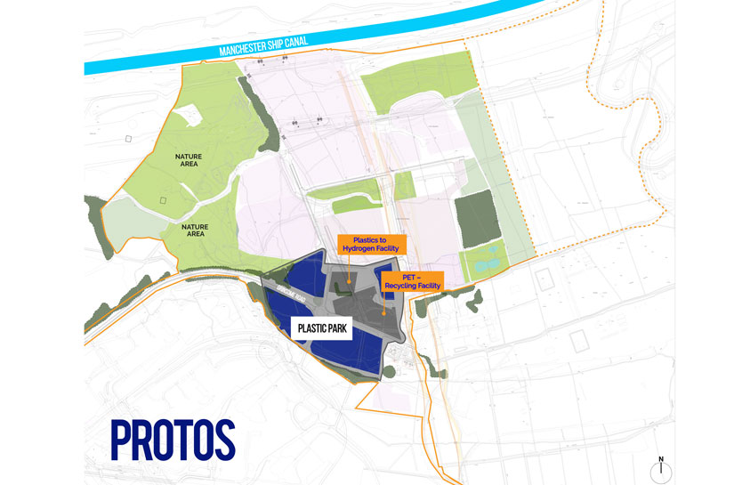 The 30-acre Plastic Park could see over £165m invested at Protos. It will cluster together a variety of plastic recycling and treatment technologies, each designed to get the most value from plastic waste, including: